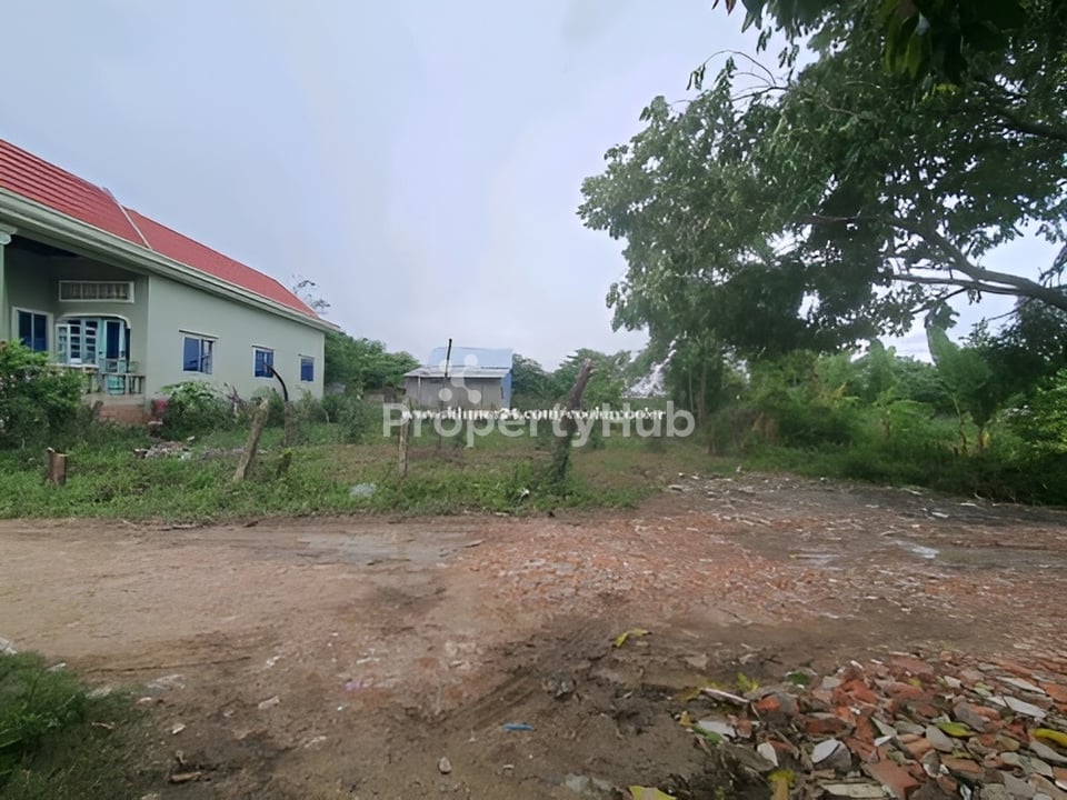 ដីភូមិស្អាត ស្មើ ទំហំ 20*20 ( ប្លង់រឹង ) ដី បែរមុខទៅ ទិសត្បូង ក្រុងតាខ្មៅ ជិតព្រលានយន្តហោះតេជោថ្មី
