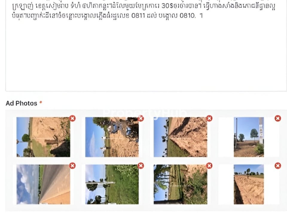 នៅជាប់ផ្លូវជាតិ6A ក្នុងខេត្តសៀមរាម ស្រុកក្រឡាញ់ ឃុំស្រណាល ភូមិទម្លាប់ នៅមុខដីមានបង្គោលភ្លើងធំៗ។បើទៅពីក្រុងសៀមរាបដីនៅឆ្វេងដៃចន្លោះបង្គោលភ្លើង 0811 និង 0810។ ក្បាលដីជាប់ផ្លូវជាតិ 100m។ ល្អសំរាប់ធ្វើ ហាងសាំង ឬ សួនកំសាន្តអាហារដ្ឋាន។ម្ចាស់ផ្ទាល់អាចចចារបាន។កំពុងកាន់ចុងសន្លឹកប្លង់រឹង។លក់បន្ទាន់ថោកខ្លាំងជាងទីផ្សារ។លៃឡុងៗប្រញាប់លុយ។