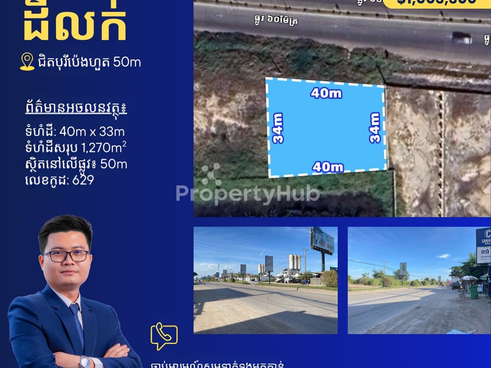Land for sale near Borey Penghout 50m, 3 minutes from Aeon 3🤩