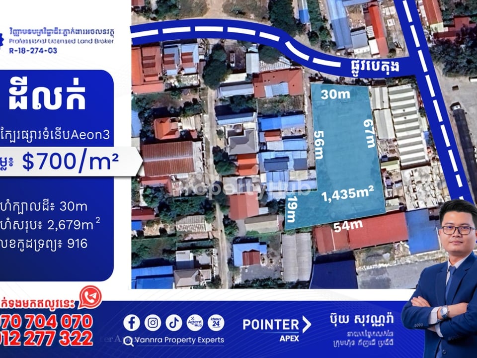 ដីសម្រាប់លក់នៅជិតផ្សារទំនើបAeon 3