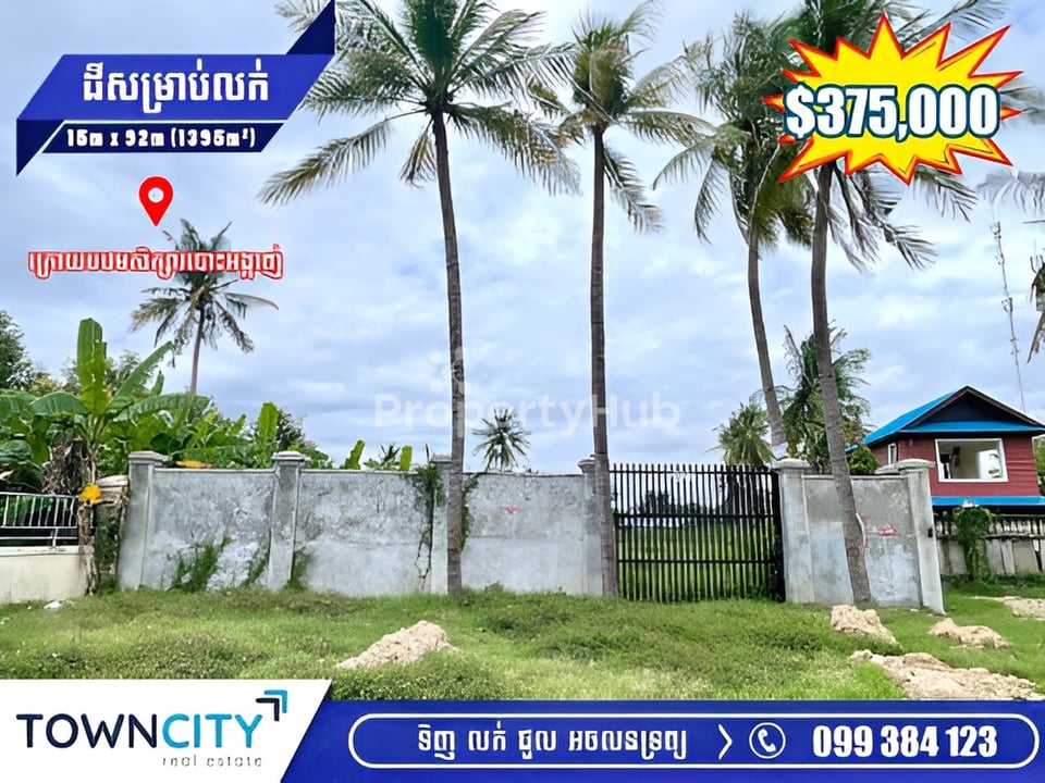 🗣️ដីលក់បន្ទាន់ 400mពីផ្លូវថៃហ្គឺ⚡️ក្រោយបុរី គីងស័ង និងក្រោយសាលាបឋមសិក្សារបោះអង្កាញ់។