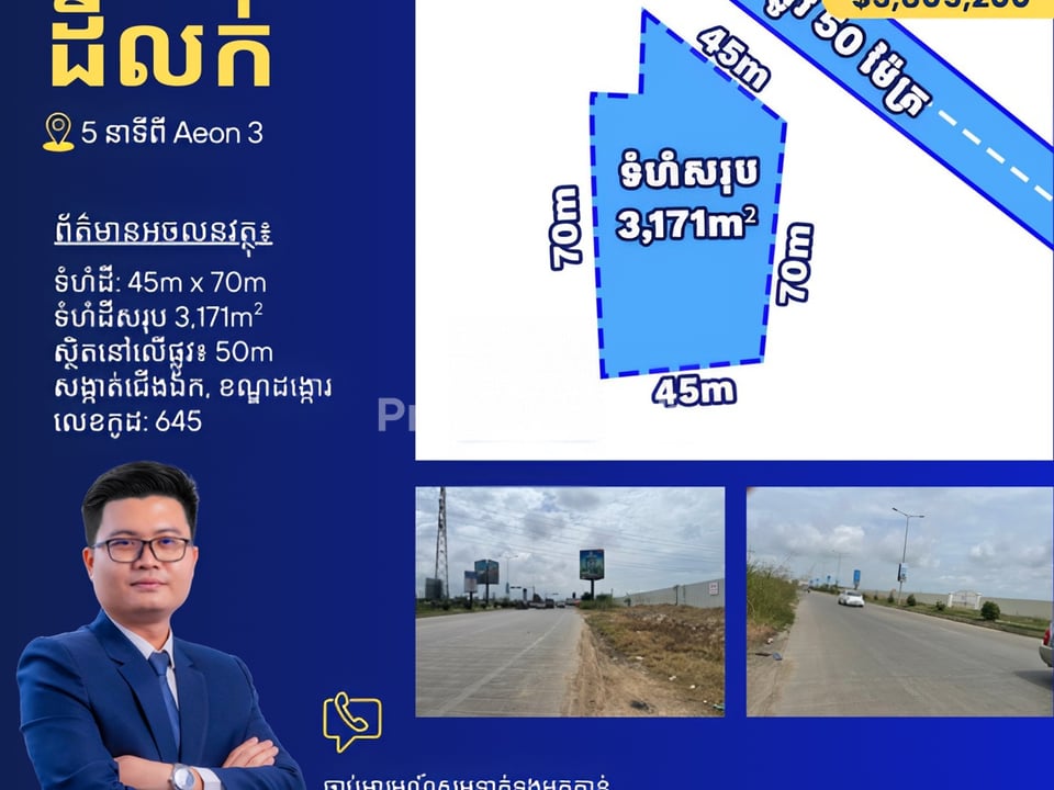 📌 លើផ្លូវ មហាវិថីសម្ដេចហ៊ុនសែន សង្កាត់ចាក់អង្រែលើ ខណ្ឌមានជ័យ