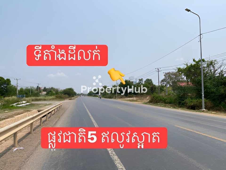 ដីលក់បន្ទាន់ជាប់ផ្លូវជាតិលេខ 5 ។ 11ម X 120ម