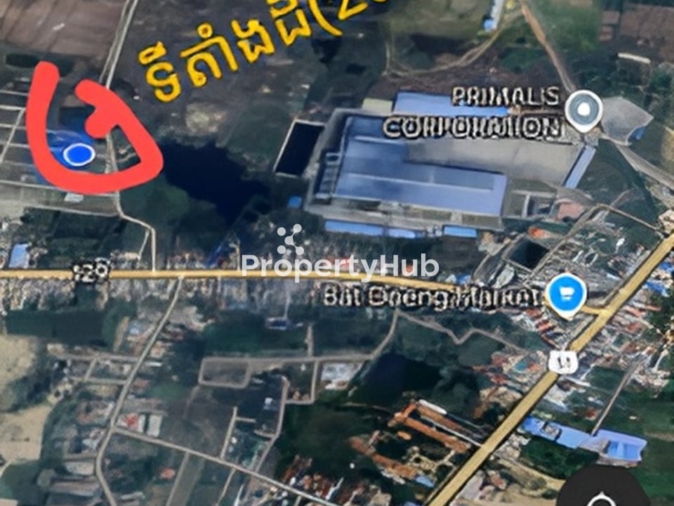ដីស្ថិតនៅក្រោយផ្សារបាត់ដឹង ជិះមិនដល់៥នាទីផង ក្រោយរោងចក្រ មានផ្លូវបេតុងស្រាប់ ផ្លូវអត់ទាល់ទេ ធ្វើឃ្លាំងរឹសង់បន្ទប់ជួលបាន .. ចុចទីតាំងmap នៅខាងក្រោម