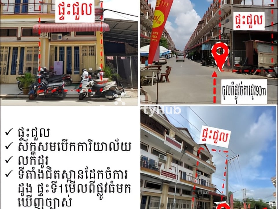 ផ្ទះជួល ស័ក្ដសមបើកការិយាល័យលក់ដូរទីតាំងជិតស្ពានដែកចំការដូង