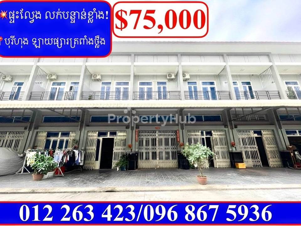 ផ្ទះល្វែង លក់បន្ទាន់ខ្លាំង! តម្លៃក្រោមទីផ្សារខ្លាំង នៅបុរីហុង ឡាយផ្សារត្រពាំងថ្ល
