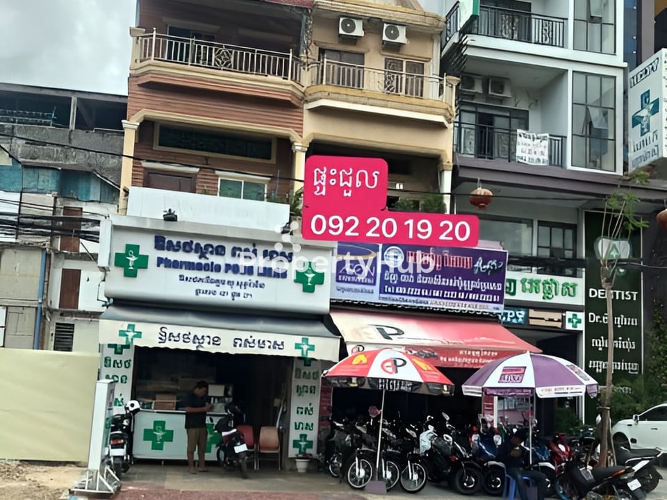 ផ្ទះអាជីវកម្ម ទល់មុខចំមន្ទីរពេទ្យព្រះកុសុមៈ ផ្លូវធំ ទីប្រជុំជន សាលា ផ្សារ មន្ទីរពេទ្យ