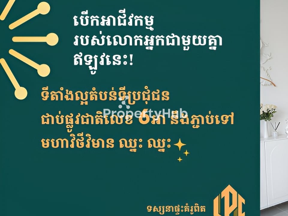 សម្រាប់លោកអ្នកដែលកំពុងមានចំណាប់អារម្មណ៍ជាមួយ ផ្ទះ អាជីវកម្ម ដែលមានទីតាំងល្អជាប់នឹងផ្លូវលេខ 𝟲អា និងមហាវិថីវិមាន ឈ្នះ ឈ្នះ រួសរាន់ឡើង!⚡️