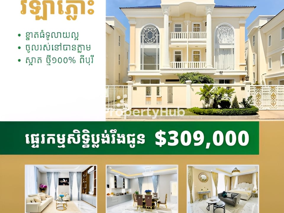 💵 តម្លៃលក់៖ $309,000 (ផ្ទេរកម្មសិទ្ធិប្លង់រឹងជូន)