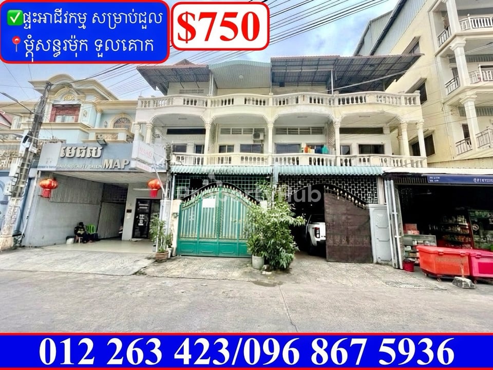 ✅ផ្ទះអាជីវកម្ម សម្រាប់ជួល នៅម្តុំសន្ធរម៉ុក ទួលគោក