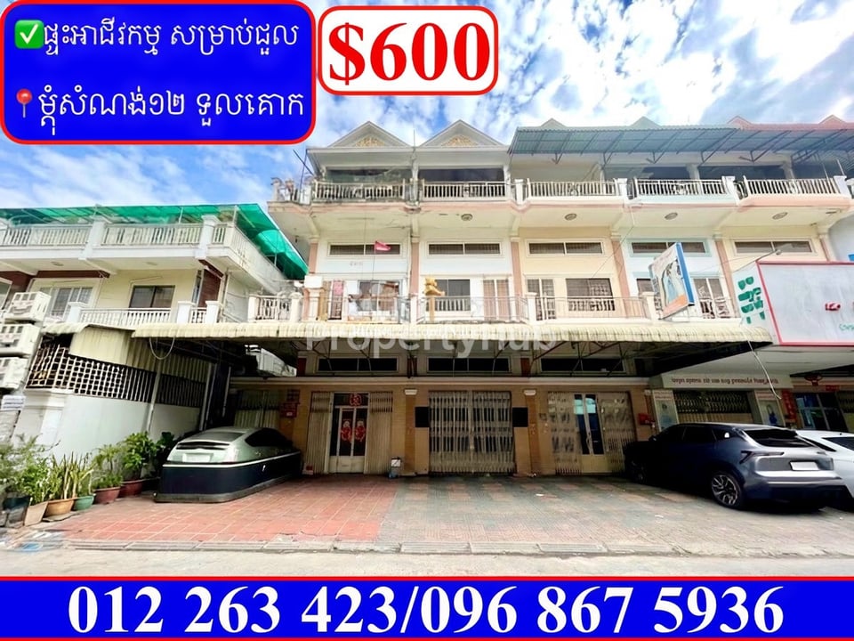 ✅ផ្ទះអាជីវកម្ម សម្រាប់ជួល នៅម្តុំសំណង់១២ ទួលគោក (Code: 00085)