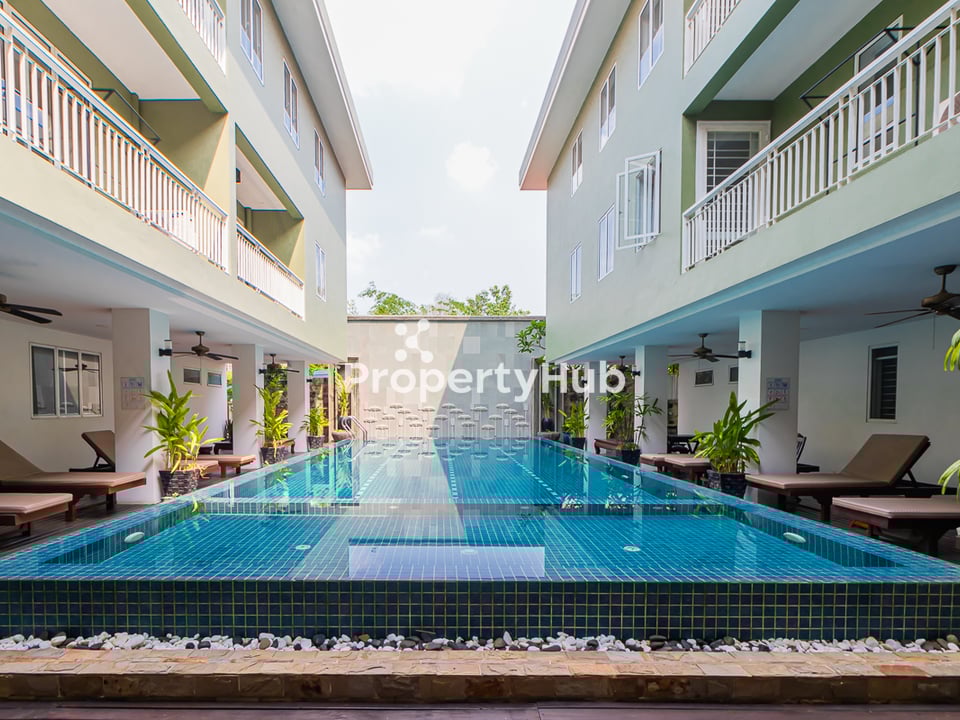 Discover a comfortable and modern 1-bedroom apartment with a pool for rent in Siem Reap. This stylish unit features one spacious bedroom, a bright living area, and a fully equipped kitchen, making it perfect for long-term stays or short-term rentals. Residents can enjoy access to a beautiful swimming pool, ensuring a refreshing escape from the tropical heat. Conveniently located in a safe and quiet neighborhood, the apartment is just a short drive from Pub Street, the Old Market, and Angkor Wat. With 24-hour security, parking, and high-speed Wi-Fi, this apartment offers both comfort and convenience for those looking to settle in Siem Reap.