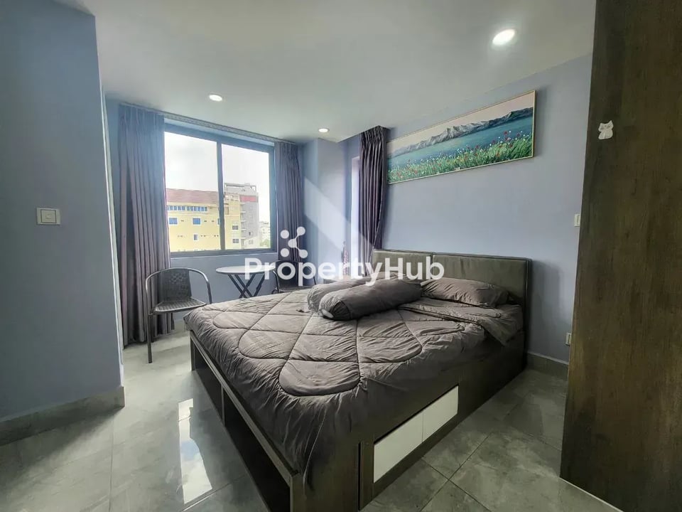 This is a fully furnished one-bedroom apartment in a secure building with 24-hour security. It features a kitchen, bathroom, and in-unit amenities like a washing machine, refrigerator, and electric stove. The rent includes high-speed Wi-Fi, garbage collection, cleaning service, free motorbike parking (with car parking available for an additional $50 per month), elevator access, and a 24-hour backup generator. You'll only pay for the electricity you use at $0.30 /kwh with free water usage.
