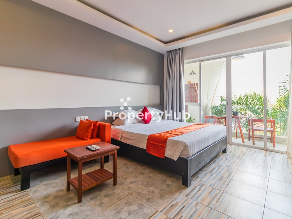 A Studio apartment with a pool is available for rent in Sala Kamreuk, Siem Reap. It has spacious bedrooms, a modern kitchen, and a bright living room, making it a comfortable place to live. The apartment also comes with a swimming pool, perfect for relaxing. It is in a quiet area but still close to markets, restaurants, and other important places. With secure parking, air conditioning, and Wi-Fi, this apartment is a great choice for a comfortable and convenient stay in Siem Reap.