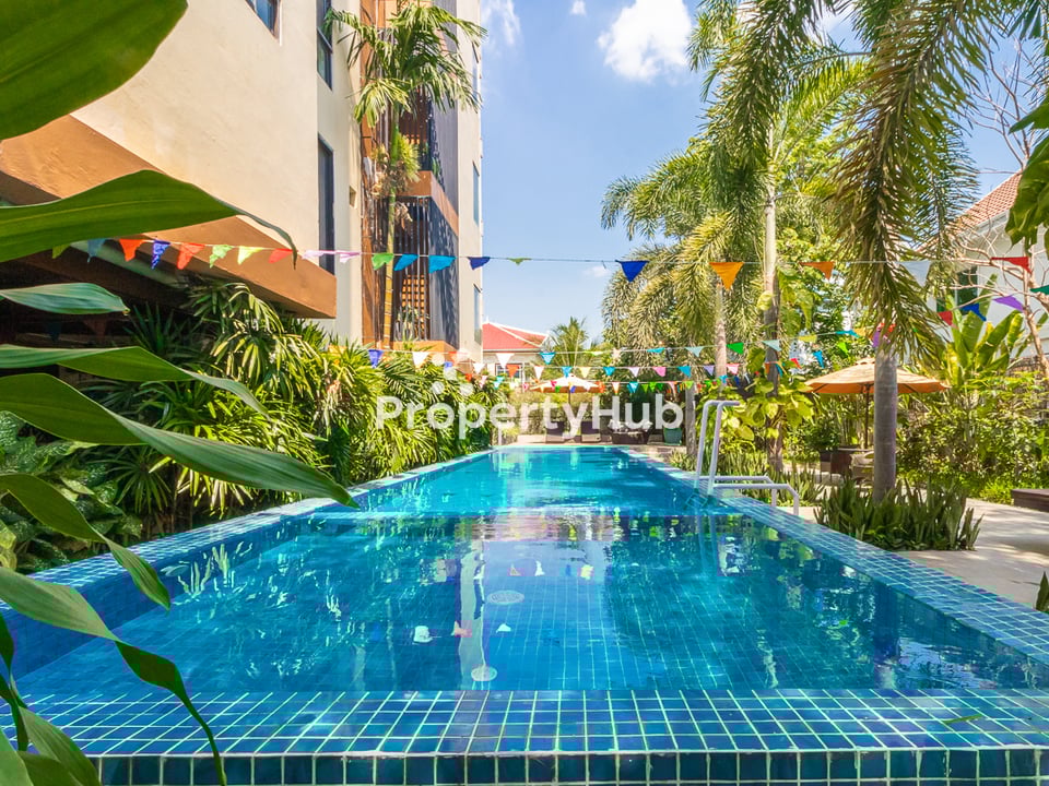 This 3-bedroom apartment with a private pool is available for rent in Siem Reap. It’s located in a quiet and safe area, not far from the city center and Angkor Wat. The house is fully furnished and ready to move in. Each bedroom has air conditioning and its own bathroom. The living room, dining area, and kitchen are open and spacious—great for relaxing or spending time with family and friends. Outside, there’s a private swimming pool and a small garden where you can enjoy the fresh air. This home is perfect for families or anyone looking for a comfortable place to live in Siem Reap.