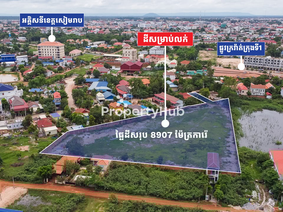 Commercial land for sale in Pnhea Chey Village, Siem Reap, with a total size of 8,907 sqm— a prime location ideal for development. This well-positioned plot is surrounded by a main road, residential homes, and is set within a rapidly developing area. Perfectly suited for building private villas, luxury apartments, or a boutique property. The land comes with a hard title, ensuring secure ownership and smooth transactions. An excellent investment opportunity in one of Siem Reap’s promising zones.