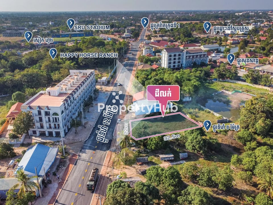 The Potential Land located in the city center, closed to Ring Road, the best for business and commercial, Surrounded by Hotel, Boutique, Restaurant, Coffee Shop, Phare Cambodia, SRU Stadium and Only 2 minutes walking to Sok San Road.