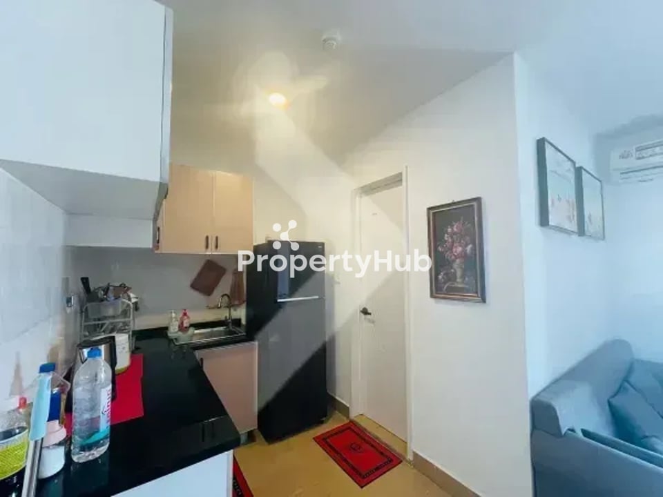 The condo unit is located close to Boeung Trabek Market (1 minute away), Toul Tom Poung Market (5 minutes away), and Koh Pich (12 minutes away). It is on the 2nd floor facing east and has a size of 46sqm. The unit comes with 2 air-cons, 1 cabinet, 1 make up desk, 1 refrigerator, 1 living room, 1 kitchen, and 1 balcony. The building also offers gym, car parking, and 24H security.