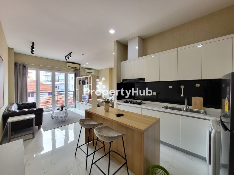 This fully furnished studio condo offers 49 sqm of comfortable living space at $450 per month, including management fee and WiFi. The unit features a private balcony and is move-in ready, ideal for singles or young professionals.