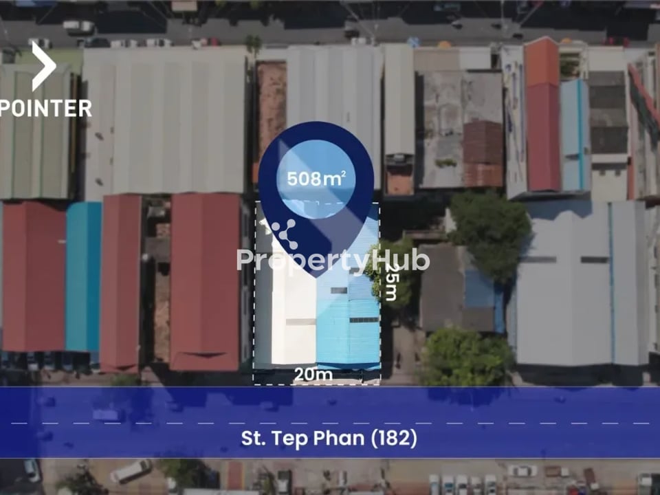 This prime land plot is located along the bustling Tephan Street 182, an area teeming with businesses and opportunities. Ideal for various investment options such as buy-to-rent, long-term investment, opening a restaurant or café, or developing high-rise buildings. The location is conveniently situated near Depo Market, Olympic Market, Toul Kork Market, and several local schools, enhancing its attractiveness for commercial ventures.