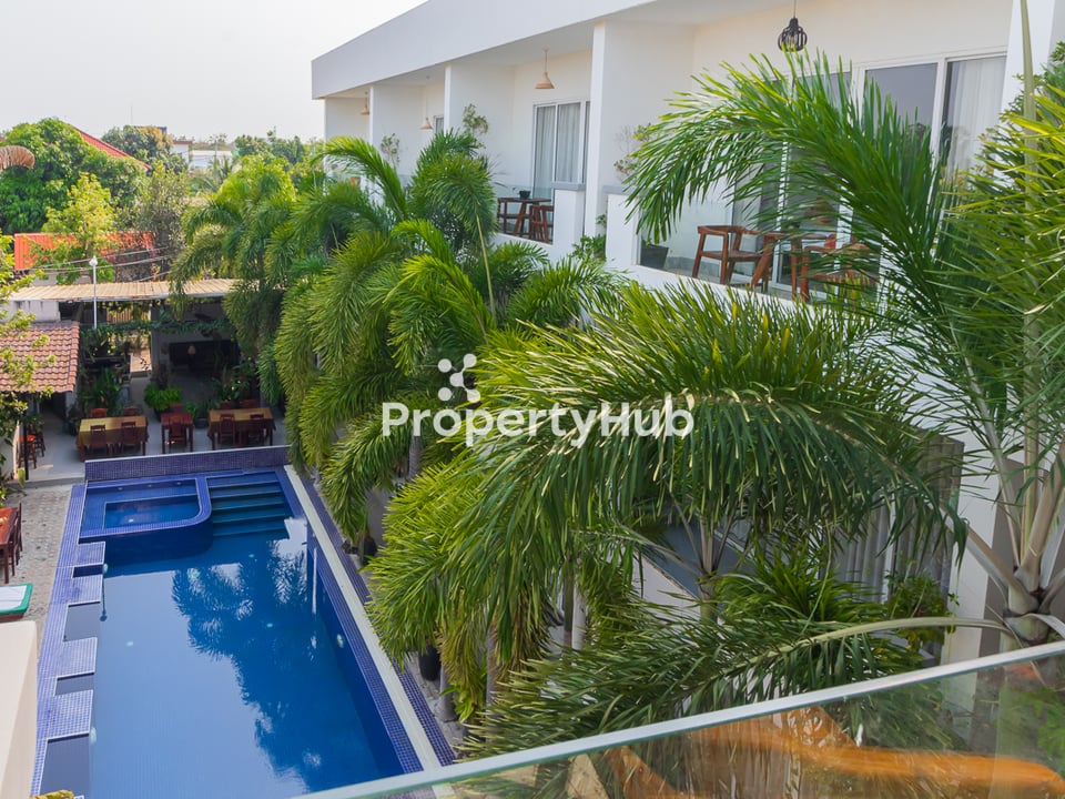 A 20-bedroom hotel with a pool is available for rent in Sala Kamreuk, Siem Reap. This well-maintained property features spacious guest rooms, a large swimming pool, a restaurant area, and a welcoming lobby, making it ideal for a hospitality business. Located in a quiet yet convenient area, the hotel is close to markets, restaurants, and popular tourist attractions. With secure parking, air conditioning, and essential facilities, this hotel offers a great opportunity for those looking to run a business in Siem Reap’s growing tourism sector.