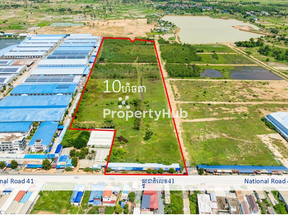 A rare opportunity to acquire 10 hectares of prime land located along Road 41, perfectly suited for industrial development. With its expansive size and strategic positioning, this property is ideal for factories, warehouses, or large-scale logistics operations. The site offers excellent accessibility to major roads, ensuring smooth connectivity to Phnom Penh and surrounding provinces.
