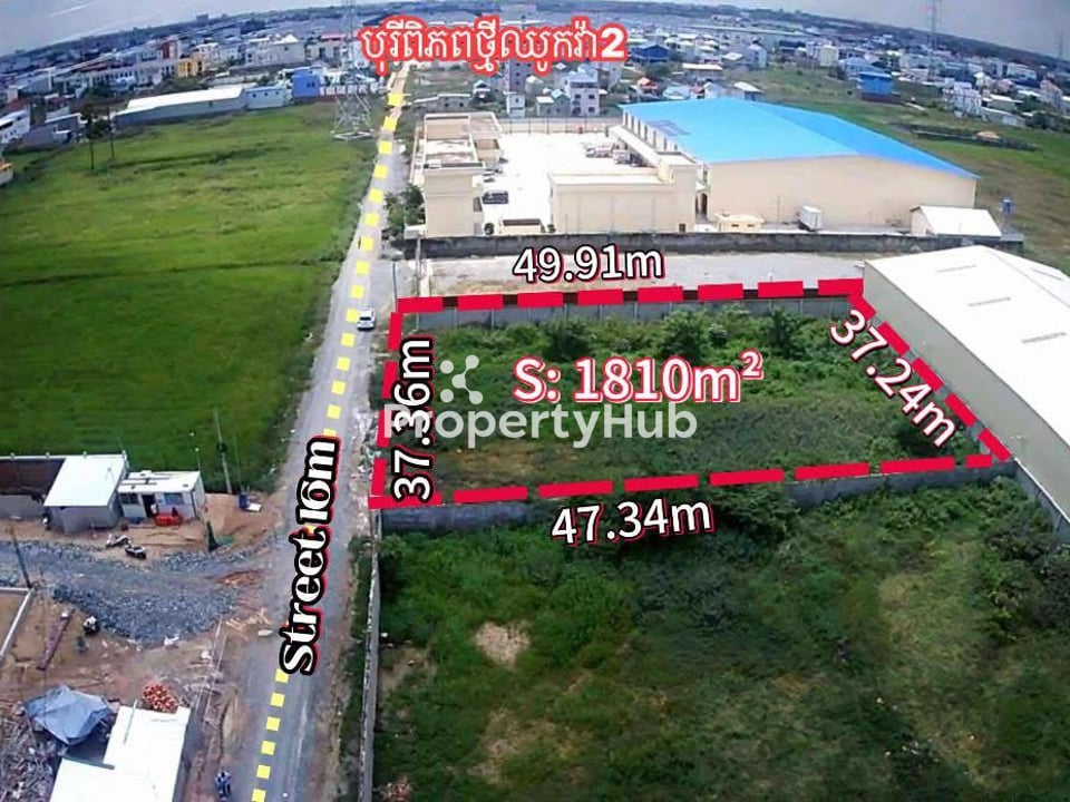 located in a developing area-Praek Pnov, Kouk Roka, Phnom Penh! This 1810m² land plot, boasting a generous 37.36m frontage, is currently offered under market price. Unlock endless possibilities in this growing neighborhood. Your future starts here!