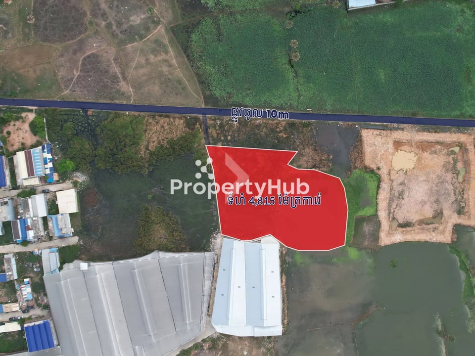 This land in Khan Pou Senchey is a prime investment opportunity! With a spacious entrance road of 10 meters, it's ideal for building a warehouse, factory, or holding onto for future development.