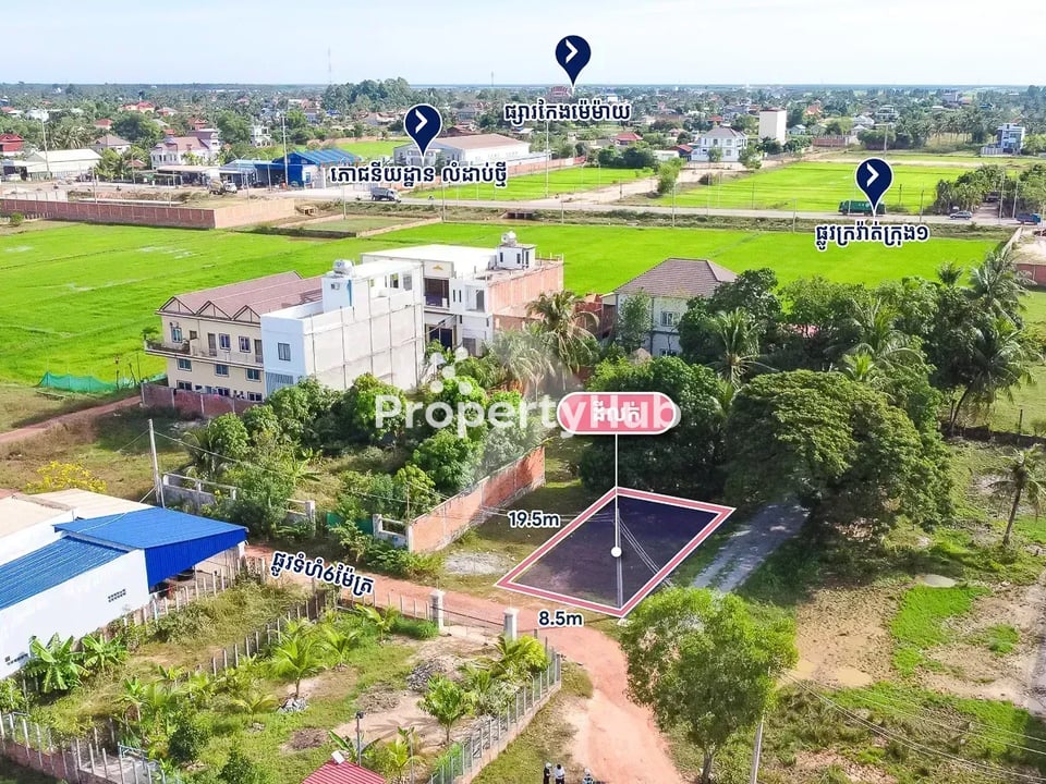 Here’s a great chance to own residential land in Siem Reap, just a 5-minute drive from the Old Market. This plot is 167 square meters and is perfect for building your own home or an investment property.