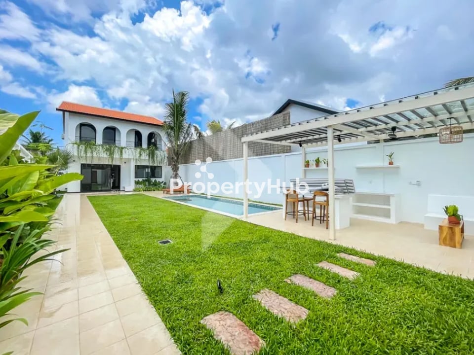 This stunning 4-bedroom villa in the peaceful Svay Dankum area of Siem Reap City is the ideal luxury getaway. With a private pool surrounded by lush gardens, it offers a serene environment for relaxation. Each bedroom is fully furnished, featuring elegant decor and comfortable amenities, ensuring a cozy stay for you and your guests. The spacious open-plan living area invites natural light, creating a warm and welcoming atmosphere perfect for entertaining.