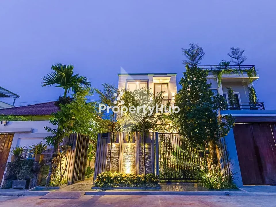 The property includes 3 bedrooms and 3 bathrooms, a private swimming pool, and a lush green garden, providing a serene and beautiful environment. Located just a 10-minute drive from Pub Street, you can enjoy the vibrant city life while residing in a quiet setting.