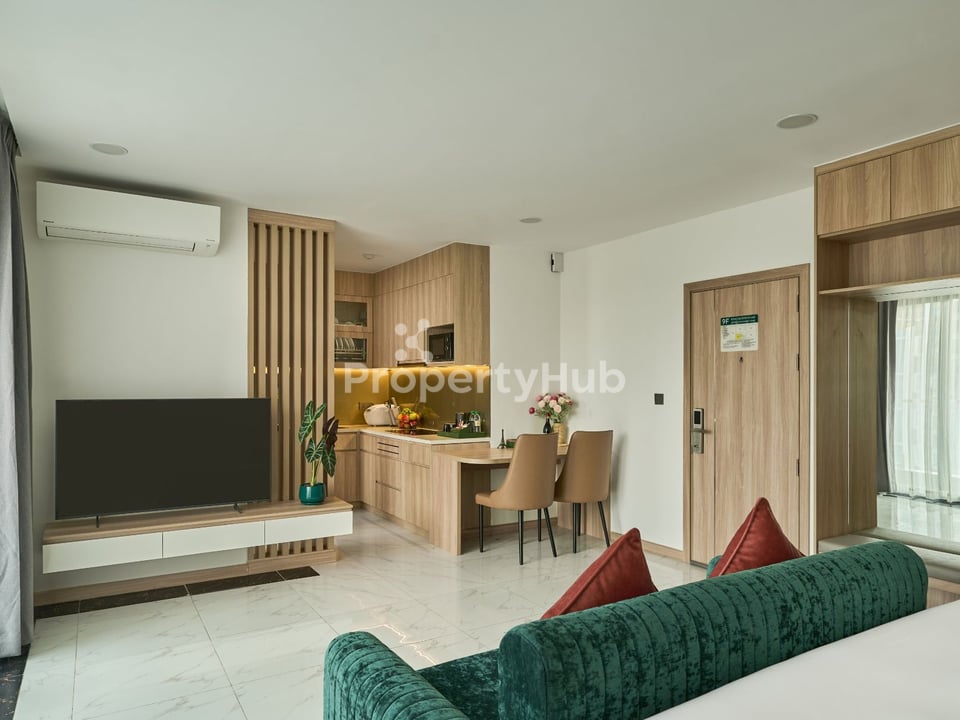 This modern serviced studio apartment is located in the heart of BKK1, offering a convenient and comfortable lifestyle ideal for professionals or expats. The unit has a total size of 40 square meters and is thoughtfully designed to maximize space and functionality.