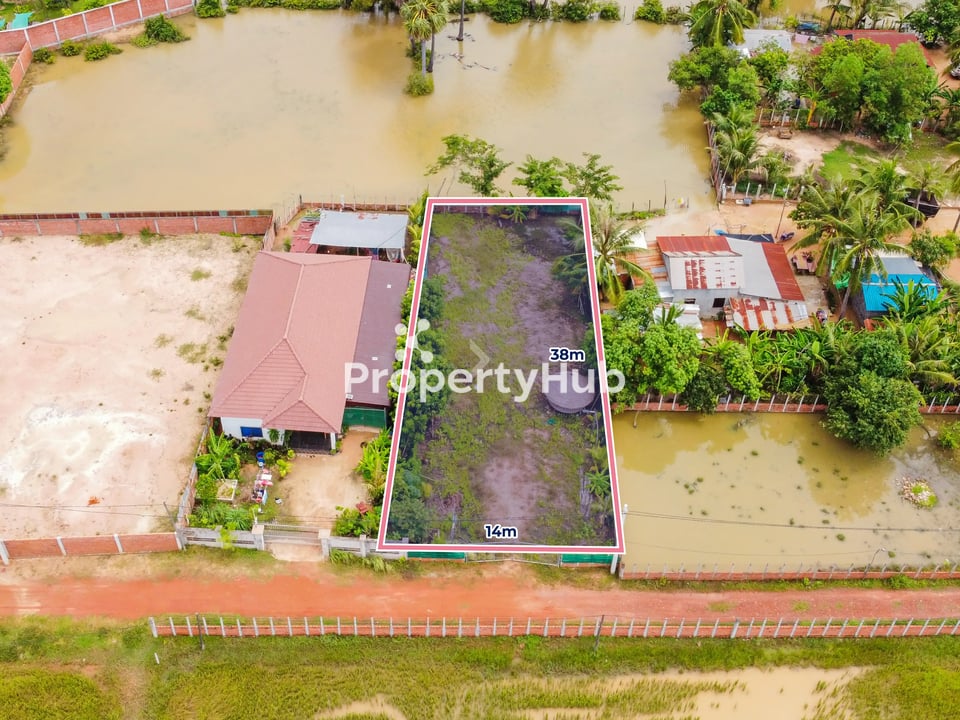 Are you looking to build your dream home or a vacation rental property? Here's a perfect opportunity! This land is for sale in a desirable location near Angkor Golf and Ring Road 1. The property measures 14m x 38m, giving you a total of 531 square meters to design your dream space. Even better, the land already has a gate and is filled, saving you time and money on prep work.