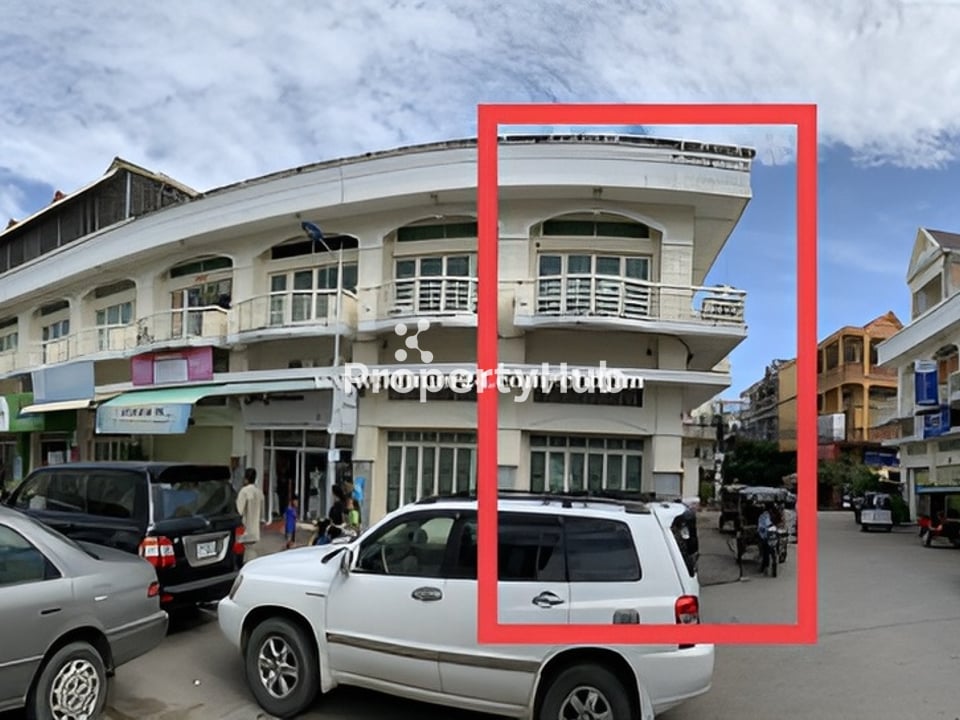 Shop house for sale in front of Chak angre Krom market, Corner,face to 3 road, good for open MFI,Banking and Restaurant.