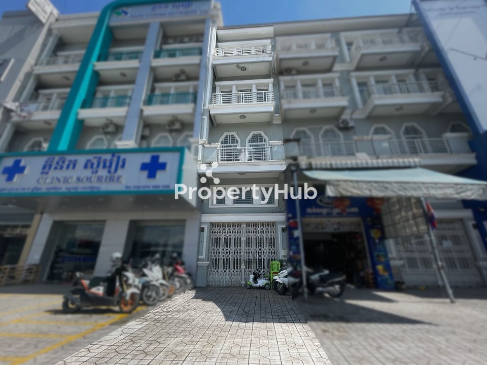 This four-storey shophouse is well positioned along Prey Sor Street, a growing corridor in southern Phnom Penh with increasing residential density and everyday commercial activity. The property sits on a 116 sqm land plot (4.15m x 28m) with a total built-up area of approximately 265 sqm, offering a solid structure and efficient layout. It features 6 bedrooms and 7 bathrooms, providing ample space and flexibility across all floors.