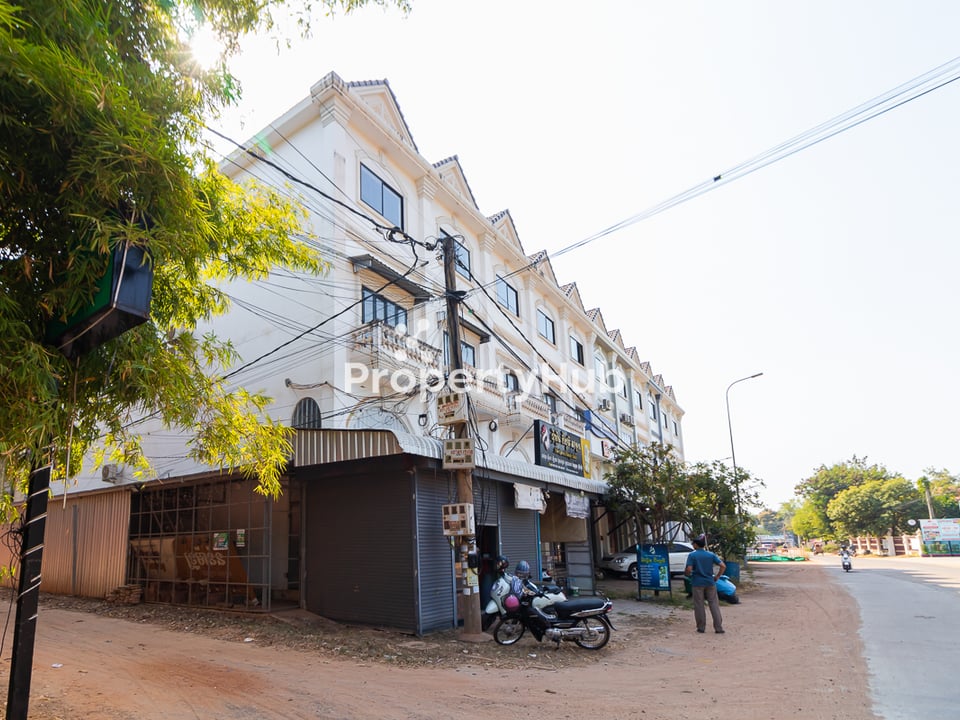 A 5-bedroom shophouse is available for rent in Siem Reap, perfect for living and running a business. It is in a great location, close to markets, restaurants, and other key places in the city. The house has multiple floors, with plenty of space for both work and home life. The bedrooms are large and have good natural light. The ground floor is ideal for a shop, office, or small cafΓ©, while the upper floors provide a comfortable living area. The house also includes bathrooms, a kitchen, a balcony, and parking space. This is a great option for anyone who wants to live and do business in one place.