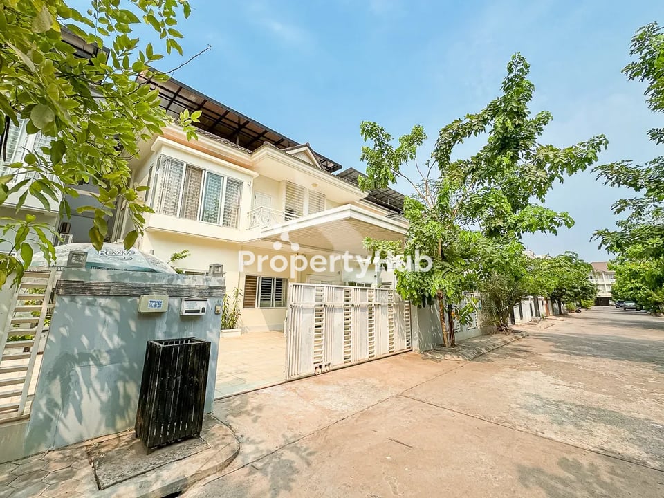 Beautifully renovated twin villa for sale in Borey Angkor Palace, Svay Dankum Commune, Siem Reap City. Just a 5-minute drive to Huy Leng Market, this property offers both convenience and luxury.