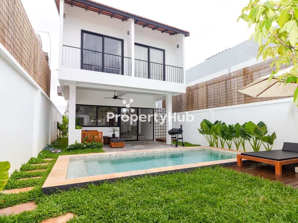 A stunning holiday villa with a private swimming pool is now available for sale in Siem Reap, offering an exceptional opportunity for both residential living and investment. Situated in a peaceful and highly accessible area, the property features well-appointed bedrooms, contemporary bathrooms, an open concept living and dining area, and a fully equipped modern kitchen. The villa’s standout feature is its beautifully designed outdoor pool, set amidst landscaped gardens, providing a tranquil and private oasis. Located just minutes from the city center and the iconic Angkor Wat temple complex, this villa presents a rare chance to own a premium property in one of Cambodia’s most sought-after destinations.