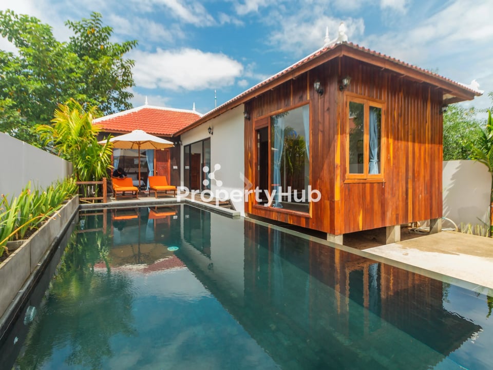 Wooden Villa with Private Swimming Pool for Rent in Svay Dankum Commune, Siem Reap City