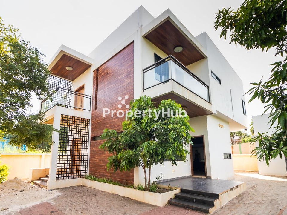 The villa features 4 spacious bedrooms and 4 bathrooms, along with a comfortable living area and functional layout suitable for family living. Outside, the property includes a private parking space and a green garden area, perfect for relaxing or outdoor activities.