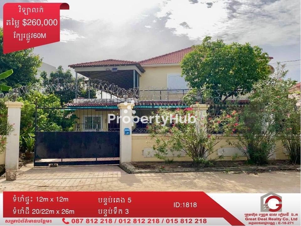 π£π£ ααααααΈα‘αΆαααααΆααααα /Villa For Sale πααΈααΆαα /Location: αααααα αΌα-60α αα·ααααααΆαααααΈ /Prekho β near new Airport π²αααααααα /Selling Price: 260,000$ (α αα αΆ/Nego) βΆοΈααα ααααα /House Size: 12m x 12m βΆοΈααα αααΈ /Land Size: 20/22m x 26m βΆοΈααααααααα /Bedroom: 5 ααααααααΉα / Bathroom: 3 βΆοΈαααααααΉα /Hard title: 468m2 βοΈαααααΆααααααααΆαααααααα 012 812 218/ 015 812 218/ 087 812 218 #houseforsale#Prekho#60m PropertyID1818