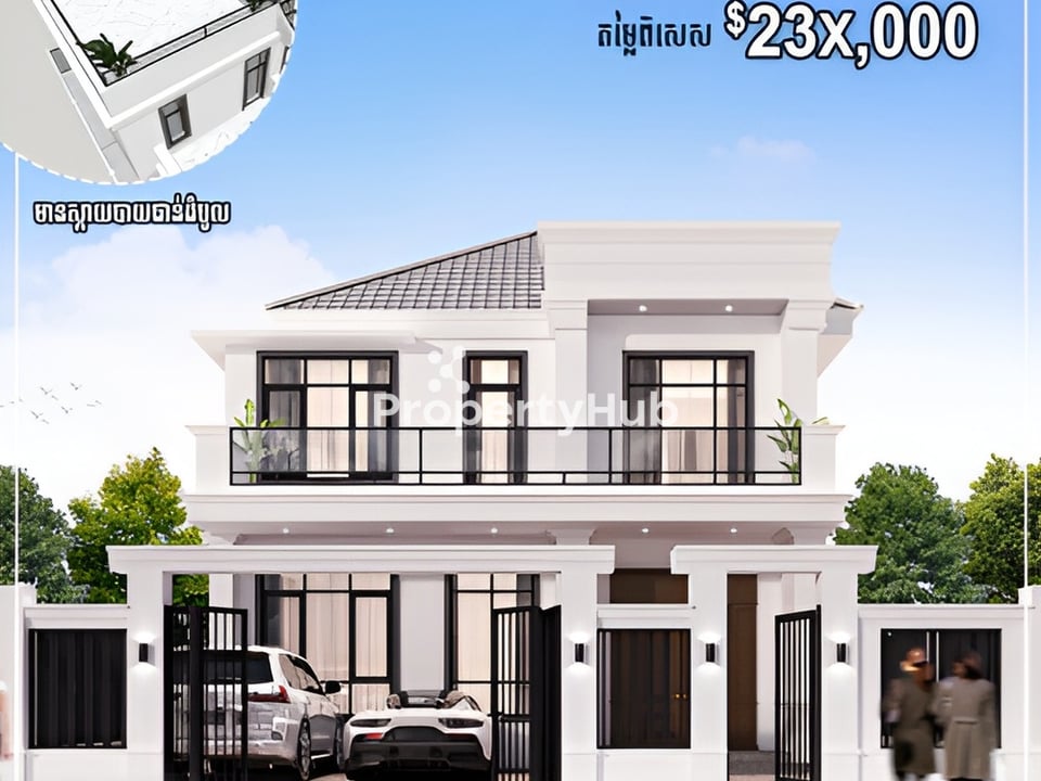 The Single Villa, designed with a modern and stylish concept that emphasizes privacy and comfort, is conveniently located just 900 meters from the new "Samdach Tepdei" flyover connecting to Techo Boulevard (60m). It is only a 6-minute drive to the sophisticated AEON Mall Meanchey and just 8 minutes away from the upcoming New International Airport (TIA).