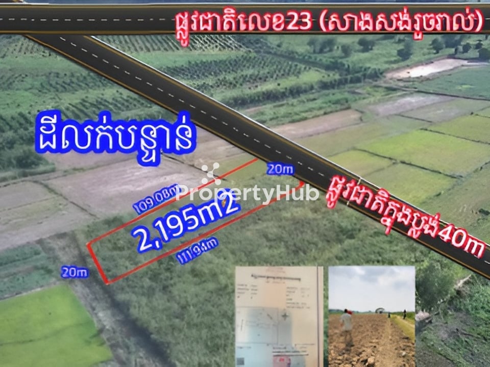 ដីជាប់ផ្លូវជាតិ40mអាចធ្វេីឃ្លាំង! 2,195m² - តម្លៃពិសេស 29,500$ (ចរចារ​បាន) ស្រុក