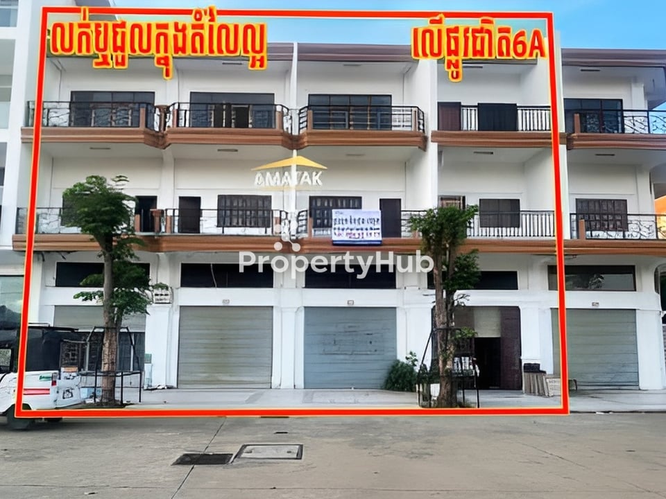 ផ្ទះអាជិវកម្ម4ល្វែងលើផ្លូវជាិត6A លក់ឬជួលក្នុងតំលៃល្អ👍🏼