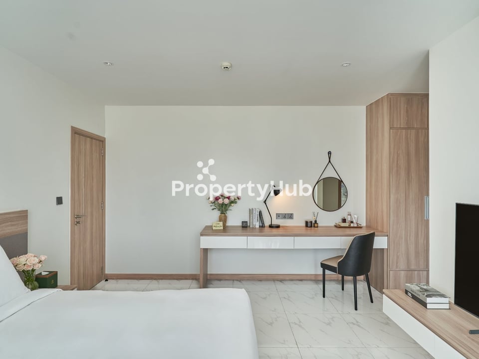 Residents enjoy access to a rooftop swimming pool on the 16th floor, a fitness center, elevator access, and parking facilities, along with a 24/7 front desk. The rental price is $4,000 per month, which includes 24/7 security and maintenance, cleaning service twice per week, bed linen change twice per week, water supply, trash collection, and one motorbike or bicycle parking space.