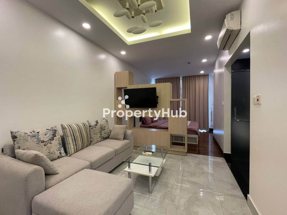 The monthly rent is $550, with a full range of services included such as management fee, 24-hour security, TV, WiFi, and cleaning service twice per week. Residents also enjoy access to premium facilities including a gym, steam room, sauna, and swimming pool, making this studio a great choice for comfortable and hassle-free living.