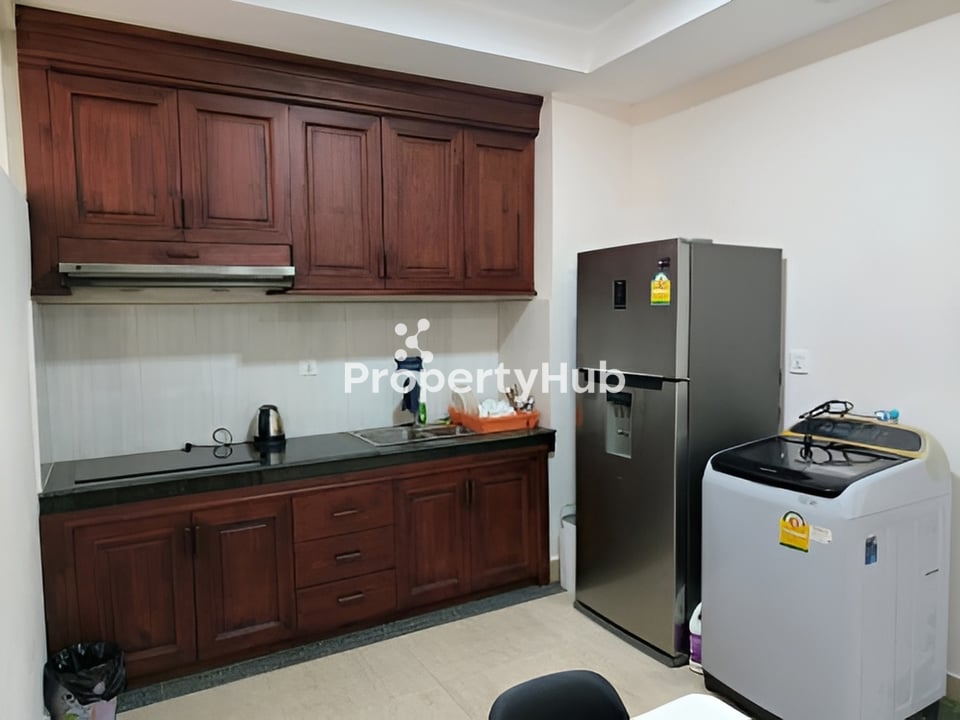 - មានសម្ភារៈផ្ទះទាំងអស់ ទូទឹកកកម៉ាស៊ីនបោកខោអាវចង្ក្រានបាយបន្ទប់ទទួលភ្ញៀវ គ្រែ ពូក ធ្នឺដាក់អីវ៉ាន ទៅដាក់សំលៀកបំពាក់