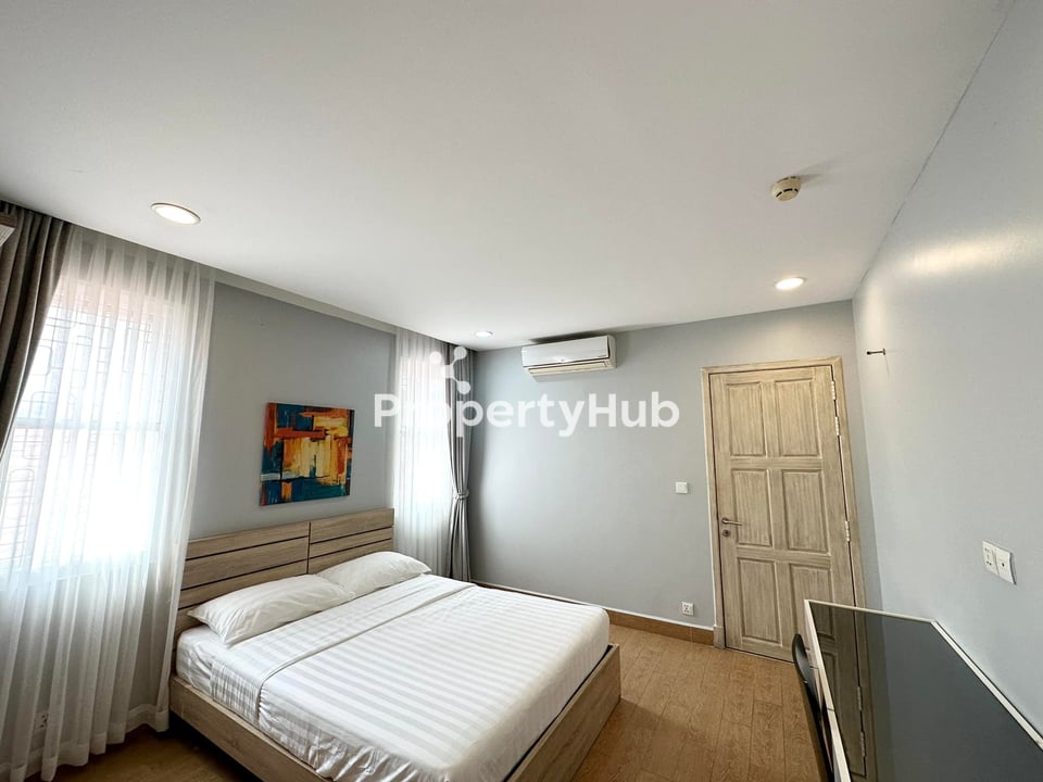 Spanning 80sqm, this 2-bedroom, 2-bathroom apartment offers a spacious and functional layout, perfect for small families or shared living. The unit is fully furnished, featuring a comfortable living area, a practical kitchen, and well-sized bedrooms. Located in the same building as the 1-bedroom option, it provides convenient access to nearby markets, cafes, and daily necessities while maintaining a peaceful residential atmosphere. Priced at $700 per month, it combines comfort, space, and a central Boeng Trabaek location for excellent value.