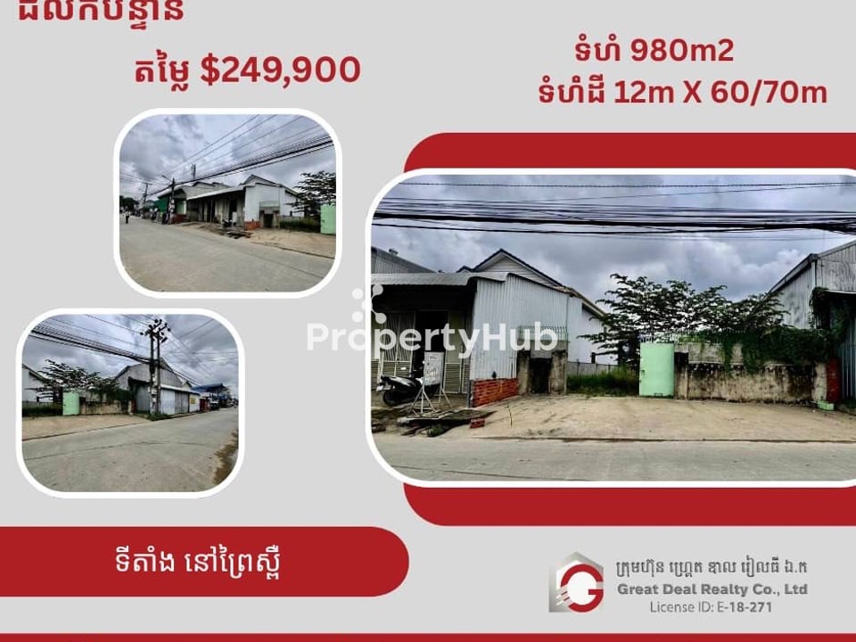 π£π£ααΈαααααΆααααα πααΈααΆαα: ααααααααΊ π²ααααα: 249,900$ βΆοΈααα αααΈ: 12m x 60/70m βΆοΈαααααααΉα: 980m2 βοΈαααααΆααααααααΆαααααααα 012 812 218/ 015 812 218/ 087 812 218 PropertyID 1913