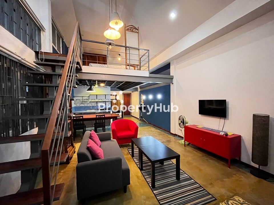 Spacious and bright loft apartment featuring high ceilings, an open-plan living area, and modern lighting. Fully equipped kitchen with stove, microwave, and generous counter space. Comfortable bedroom with a cozy atmosphere and private balcony enclosed by natural wood screens—ideal for relaxing or working. Stylish interiors blend contemporary finishes with rustic charm, offering the perfect mix of comfort and character in a prime central location.